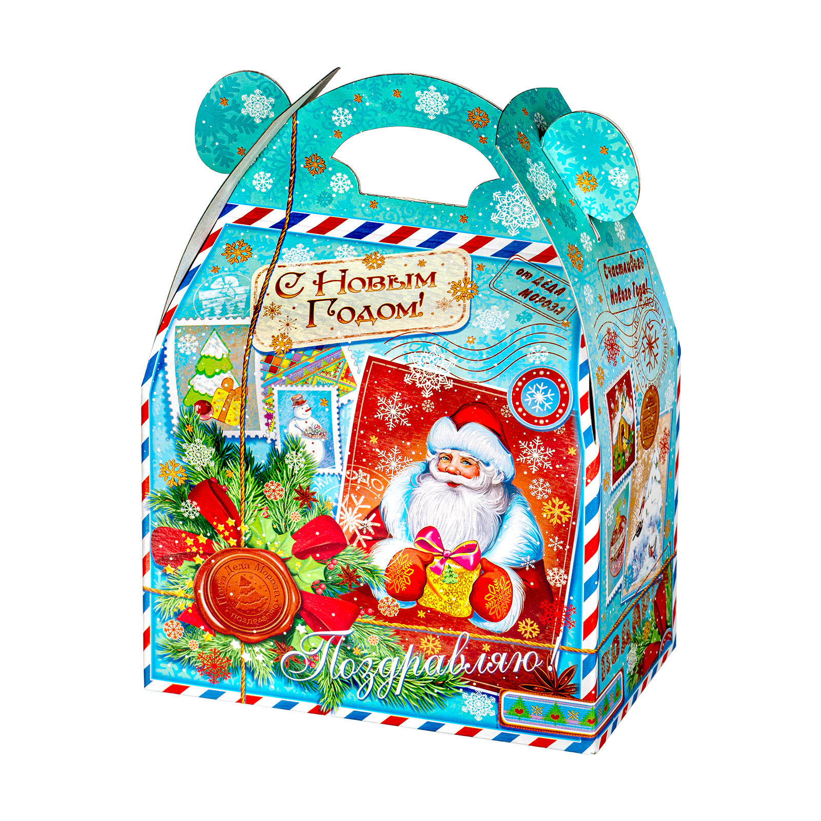 Новогодние сладкие подарки в картонной упаковке актуальны и по сей день. Набор “Сундучок открытки” - это универсальный выбор, который прекрасно подойдет как для ребенка, так и для совершенно взрослого сластены. Подарочная упаковка прекрасно сочетает в себе яркие праздничные иллюстрации и приятный нежно-голубой фон. Внутри набора хранятся 500 грамм самых разнообразных сладостей от ведущих кондитерских предприятий и небольшой памятный сувенир, который надолго сохранит в себе волшебную атмосферу новогодних праздников.